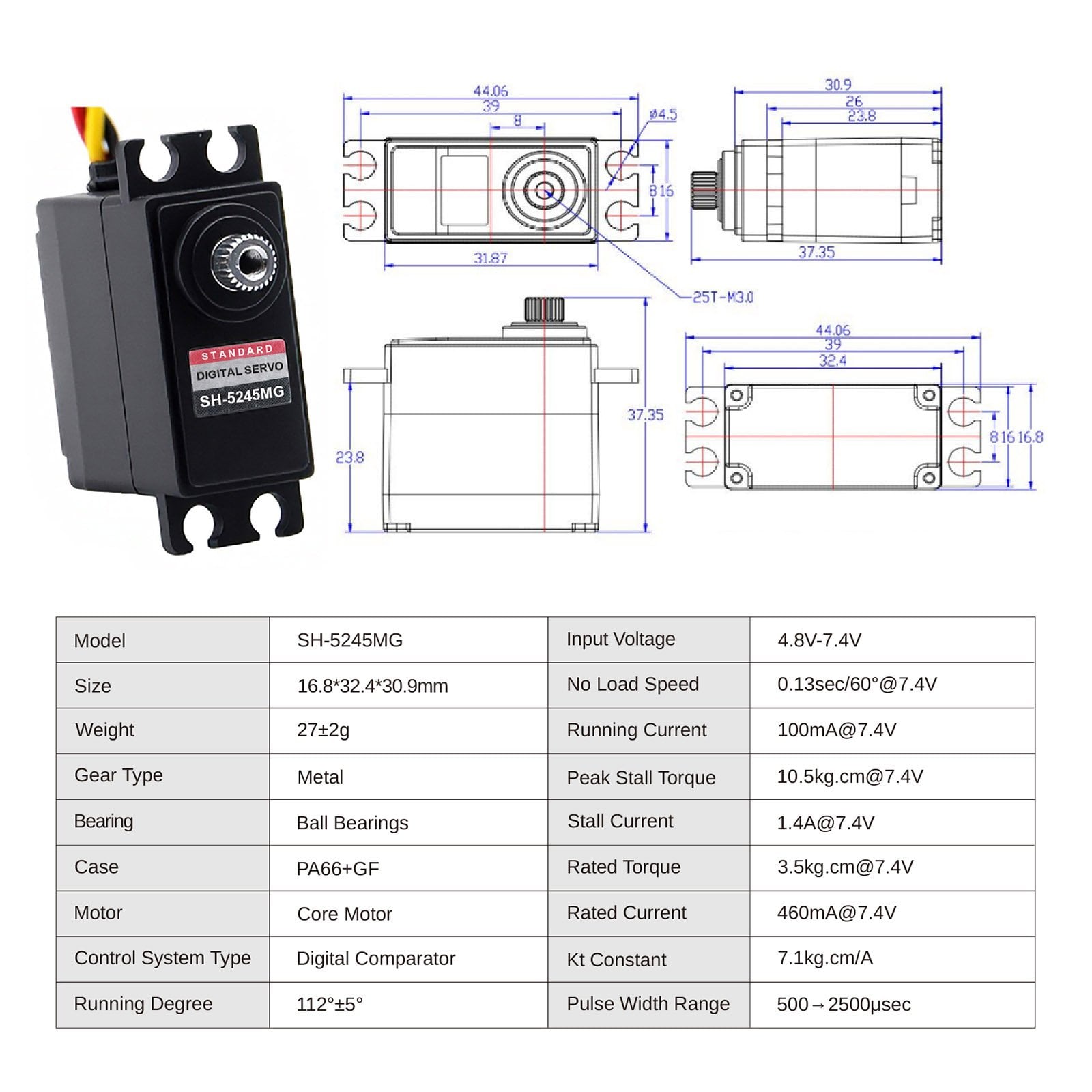 Feetech 5245MG HV 10.5 Kg Metal Dişli Dijital Mini Servo Motor (HS-5245 Match)