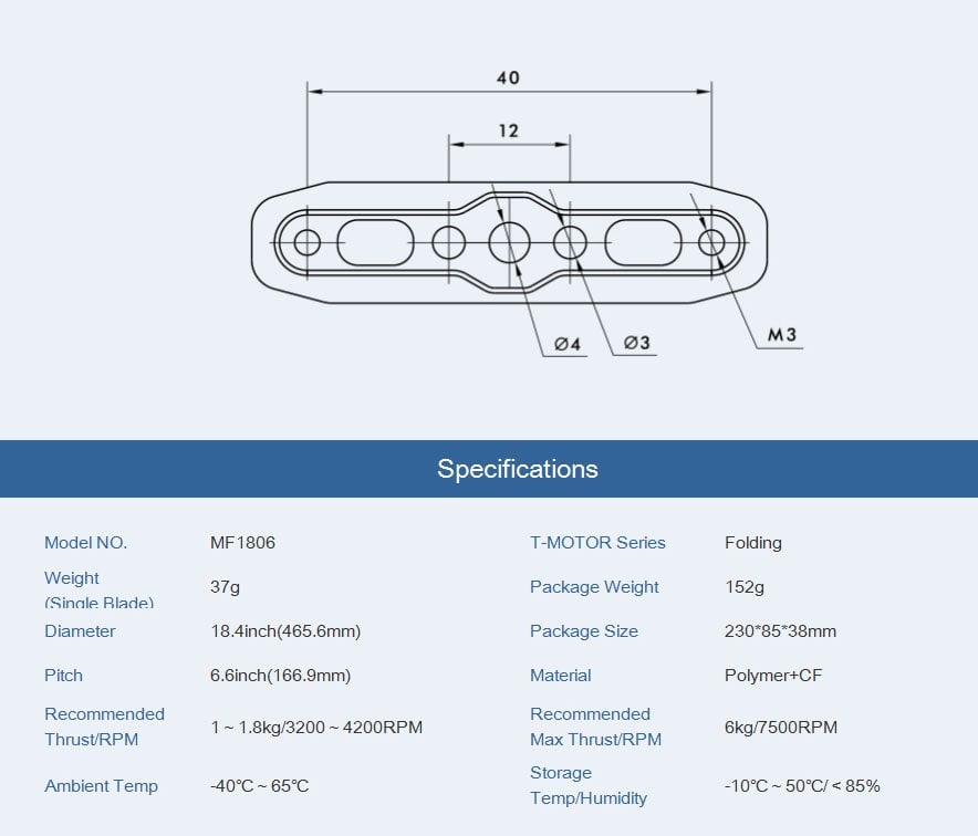 T-Motor Katlanır MF1806 Karbon Polymer Hibrid Pervane (Sağ&Sol Çift) 18x6.6